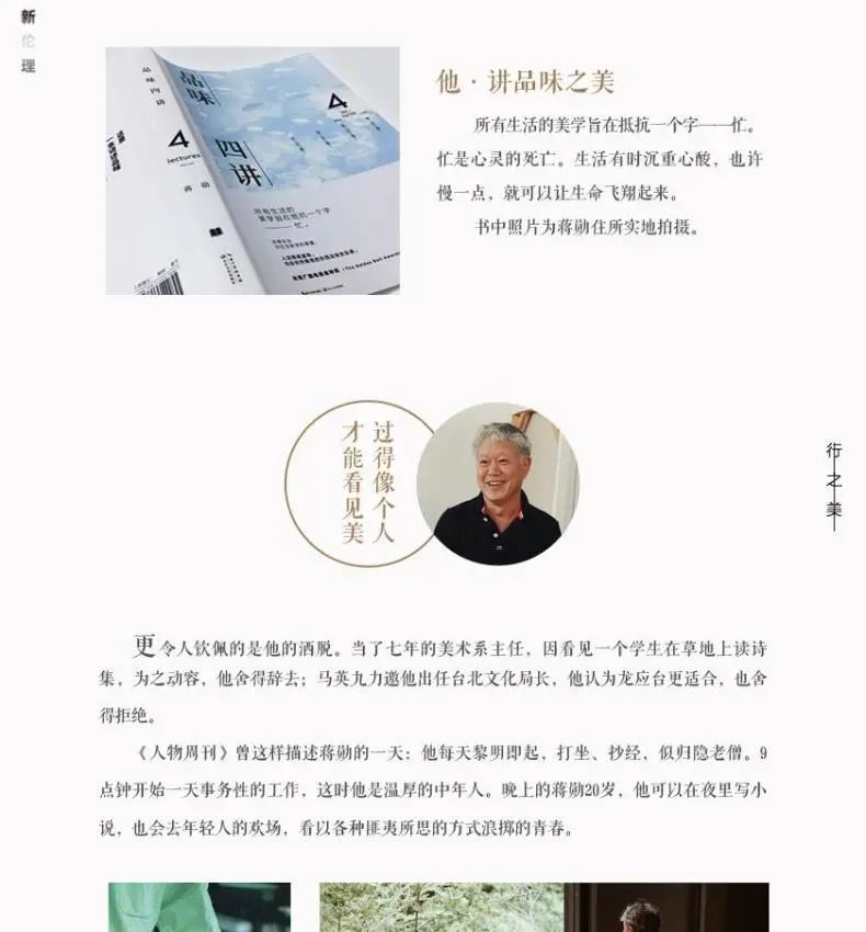 我想这是保留在我们语言当中最好的美学提示,它不是一个伟大的体系,可是它告诉我们说人生到底应该怎么去看,所以我常常会反省或检讨我自己,我是不是太忙了,我必要这么忙吗,还是应该留出一些时间给我自己,这个时间我可以去感觉我生活周遭的东西。