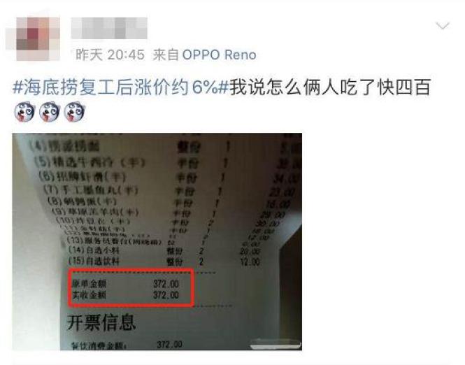 网友爆料:海底捞涨价