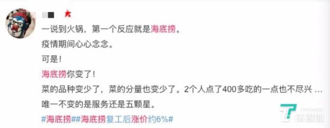 “本来以为海底捞涨价涨得有点多