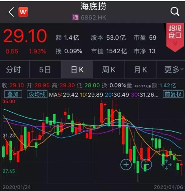 发现海底捞现在的价格