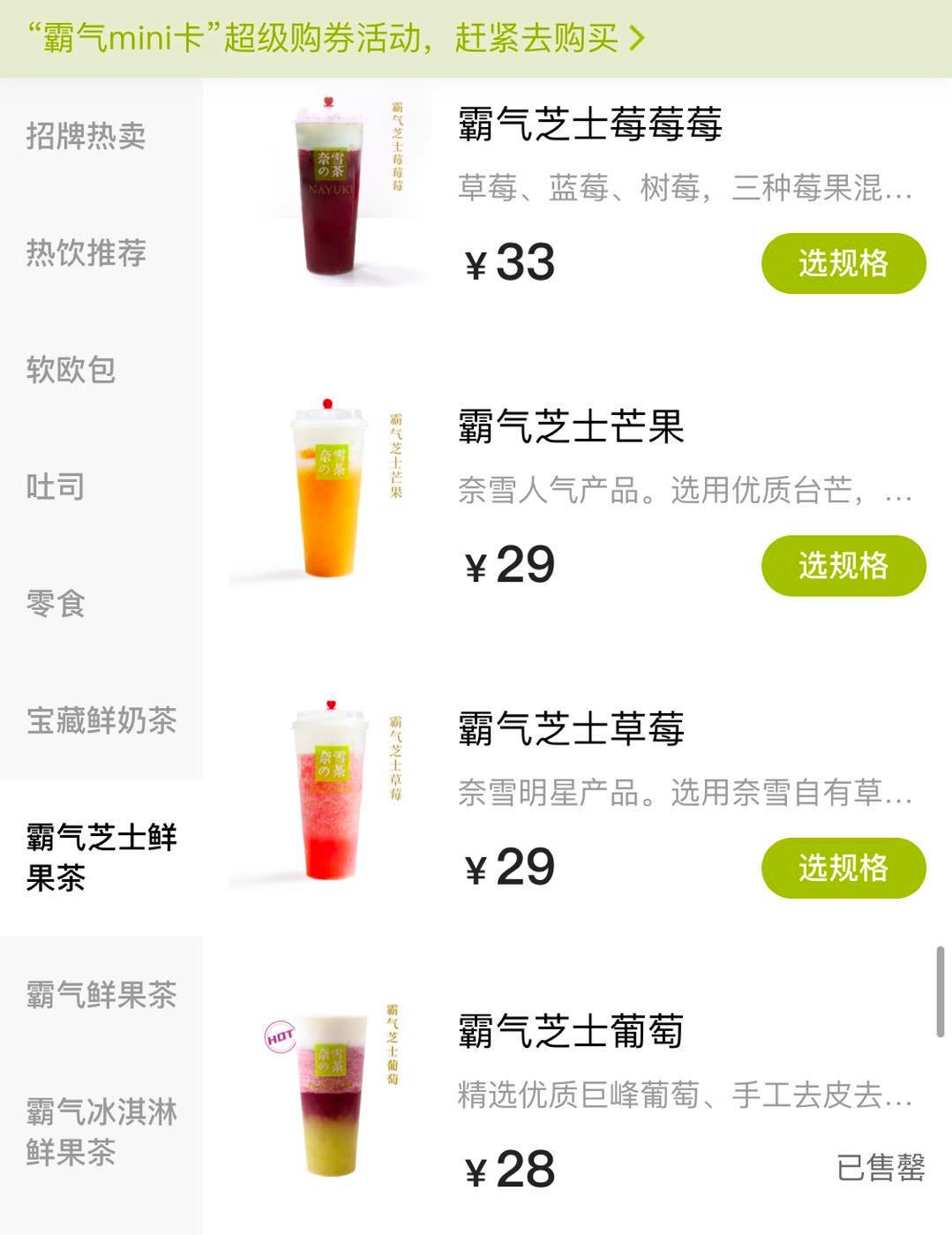 奈雪个别产品上调价位