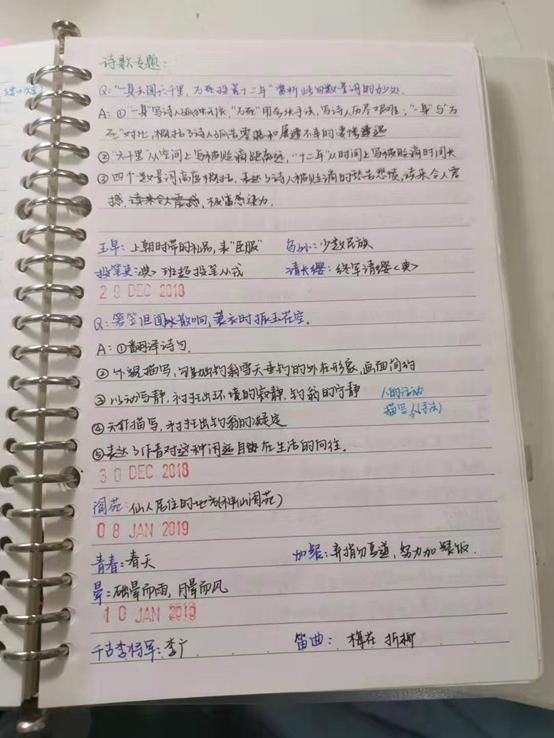 2、 古文阅读方面,基础知识积累很重要,好好记忆古文中常见的实词、虚词、特殊句式的意思,除了老师硬性规定背诵的部分,一定要重视平时老师讲解古文时解释的文言词句,稳扎稳打,做一篇积累一篇。古诗词阅读方面,除了要归纳常见的手法、意象、主题思想等基础知识,还要学会总结题目类型。在考场的高压环境下,答题动作只会变形,所以不要期待自己能在考场上超常发挥,平时练习就要形成良好的答题规范,比如关注标题、注释隐含的信息,联系作者生平知人论世,边读边在心中逐字逐句地翻译,避免理解时想当然等,养成好习惯。
