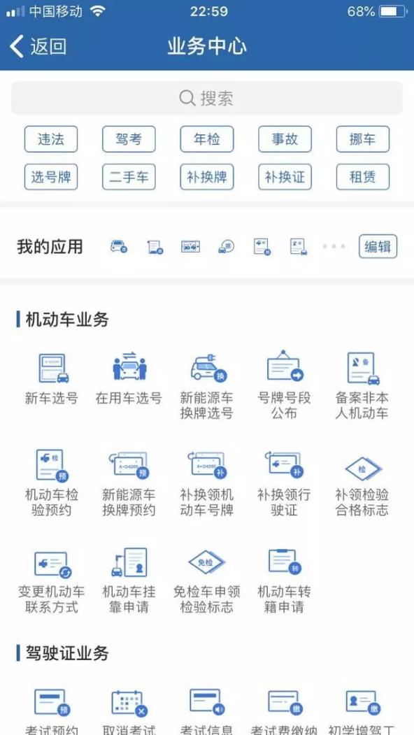 (驾考预约、驾驶证审验、期满换证、遗失补证、超龄换证、损毁换证、延期换证/提交身体条件证明/审验、变更驾驶证联系方式等)