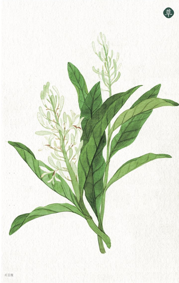 状,被卷曲的嫩叶包裹生长。花朵微红,花穗尖端颜色较深,叶片渐渐舒展,花朵也纷纷探出。古话说这种花吃了可以破气消痰,让酒量大增。泰康二年(公元281年),交州(西晋时期的交州主要包括今越南中北部、广东雷州半岛和海南岛等地区)曾进贡一小筐,皇上亲自试过,确实有效,还赏赐给亲近的臣子。