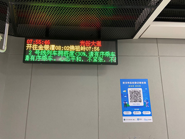 地铁上,有的乘客隔得近,工作人员会提醒,保持一米的间距。地铁出站时,只需刷票就行。