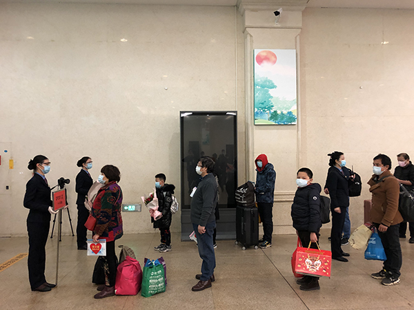 晚上9点左右,再次扫健康码、测体温,没有查看任何手续,李智伟直接进站了。候车室乘客不多,大部分只戴了口罩,个别穿防护服、带橡胶手套。人们自动隔开1米远,几乎没有交流声。