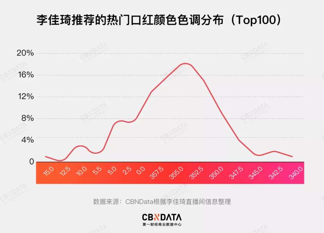 CBNData数据分析师洪蕾表示:“通过图像识别市面上大量的口红产品色号后发现,李佳琦的推荐更加贴合中国女性的肤色,主要还是以正红、橘红、深红色为主,而玫红、粉色系、亮红色等黄皮不容易驾驭的颜色,李佳琦鲜少推荐。”