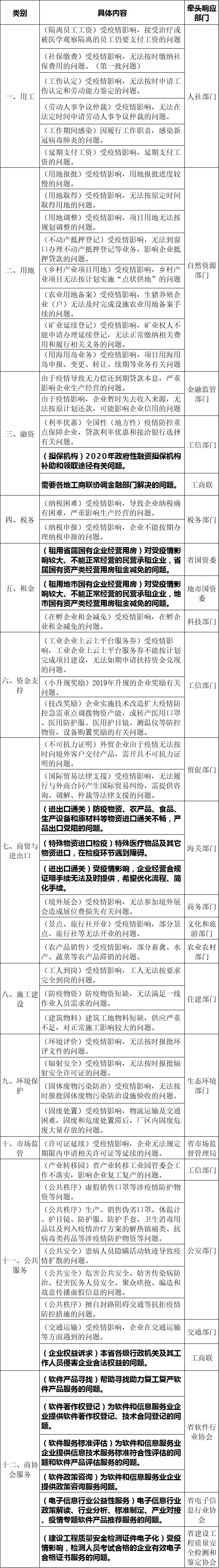 又新增14种企业诉求问题,