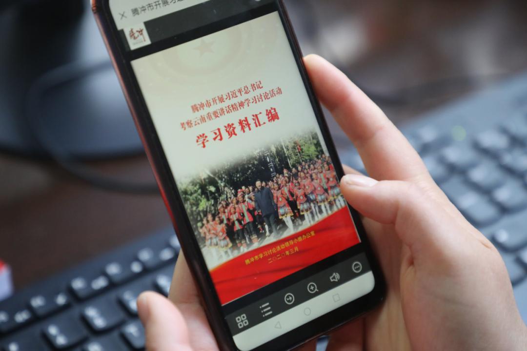 腾冲市委编办及时发放《腾冲市开展习近平总书记考察云南重要讲话精神学习讨论活动学习资料汇编》14册,向抽调防疫一线的同志推送了《总书记来到我家乡》短视频和《学习讨论活动视频学习资料汇编》及《腾冲市开展习近平总书记考察云南重要讲话精神学习讨论活动学习资料汇编》电子书,组织全办干部职工集中学习视频短片《情满司莫拉》,确保党员、干部学习全覆盖;通过微信、学习强国APP、云岭先锋APP等跟进学习习近平总书记最新重要讲话精神和重要论述,通过读原文、看视频、悟原理,做到线上线下同步学习,帮助党员、干部准确把握精髓要义、理解精神实质。
