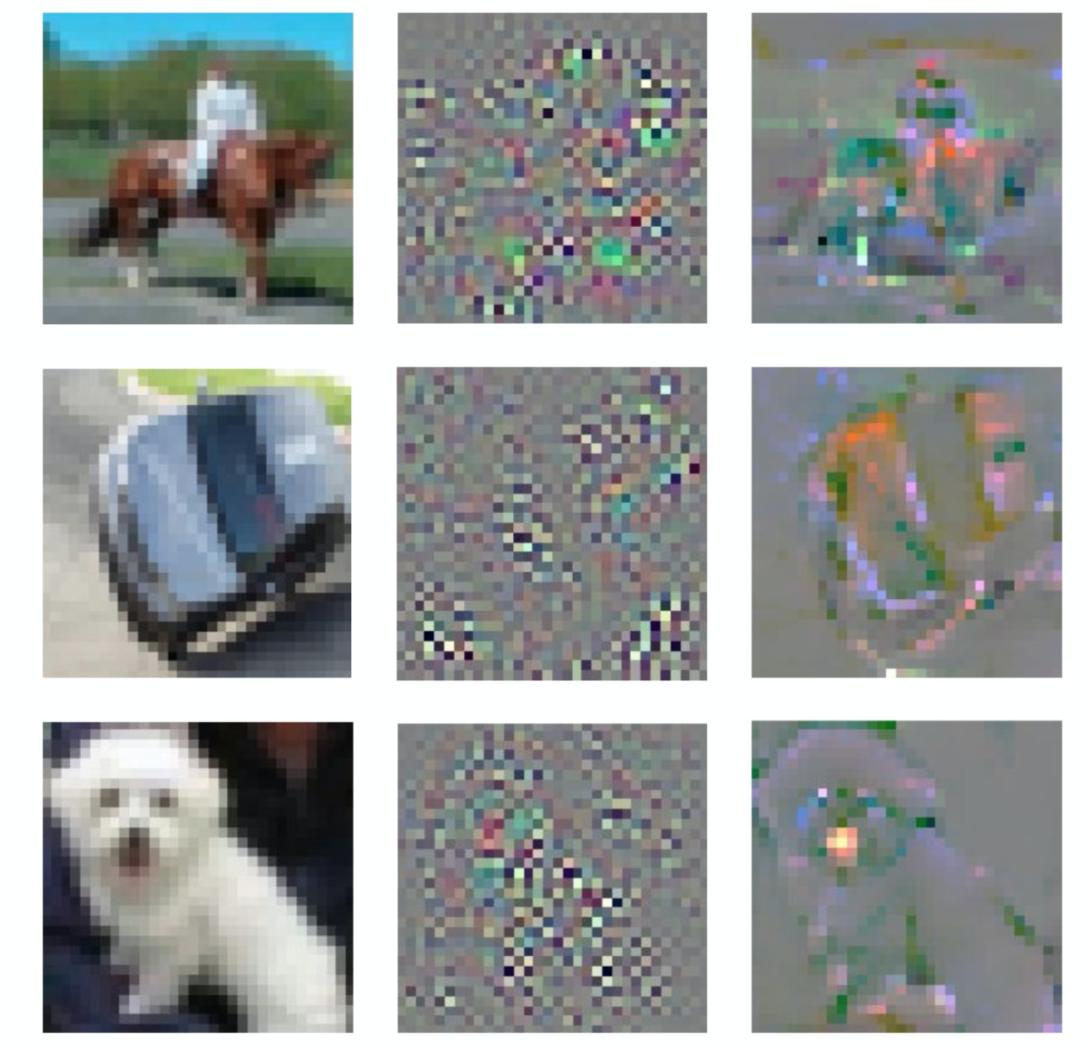 这篇文章关注的是模型面对对抗样本时的鲁棒性的问题。在源任务和目标任务使用模型架构相同的情况,对扰动具有鲁棒性的权重在不同任务间也具有鲁棒性。本文作者选择了输入梯度(input gradient)作为不同任务间迁移的媒介,从而实现任务不可知和体系结构不可知的鲁棒性迁移,称为「输入梯度对抗匹配(input gradient adversarial matching (IGAM))」。之所以选择输入梯度,是因为鲁棒的对抗训练(Adversarial Training, AT)模型得到明显的输入梯度,而非鲁棒模型则给出有噪声的输入梯度,如图 1。每个像素的输入梯度定义了微小的变化如何影响模型的输出,并且可以粗略估计出每个像素对于预测的重要性。