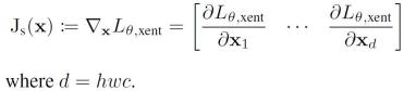 其次,下一步我们在学生模型的训练过程中进行输入梯度匹配:在目标任务数据集 D_target 上表征学生模型 f_s 的分类交叉熵损失为: