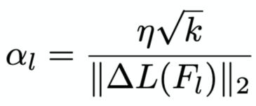 其中,γ为整个神经网络的全局学习率,∆L(F_l) 是滤波器的梯度,α_l 为相应的局部学习率,具体的: