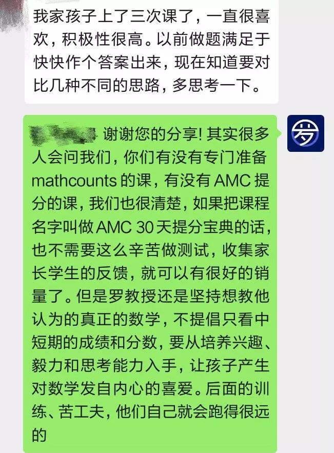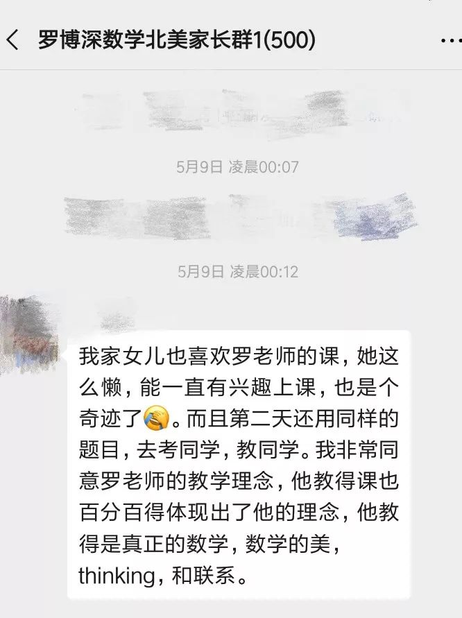 除此之外我们也收到了一些来自家长的好评,说孩子上了罗教授的课后开始主动去思考、去学数学了。