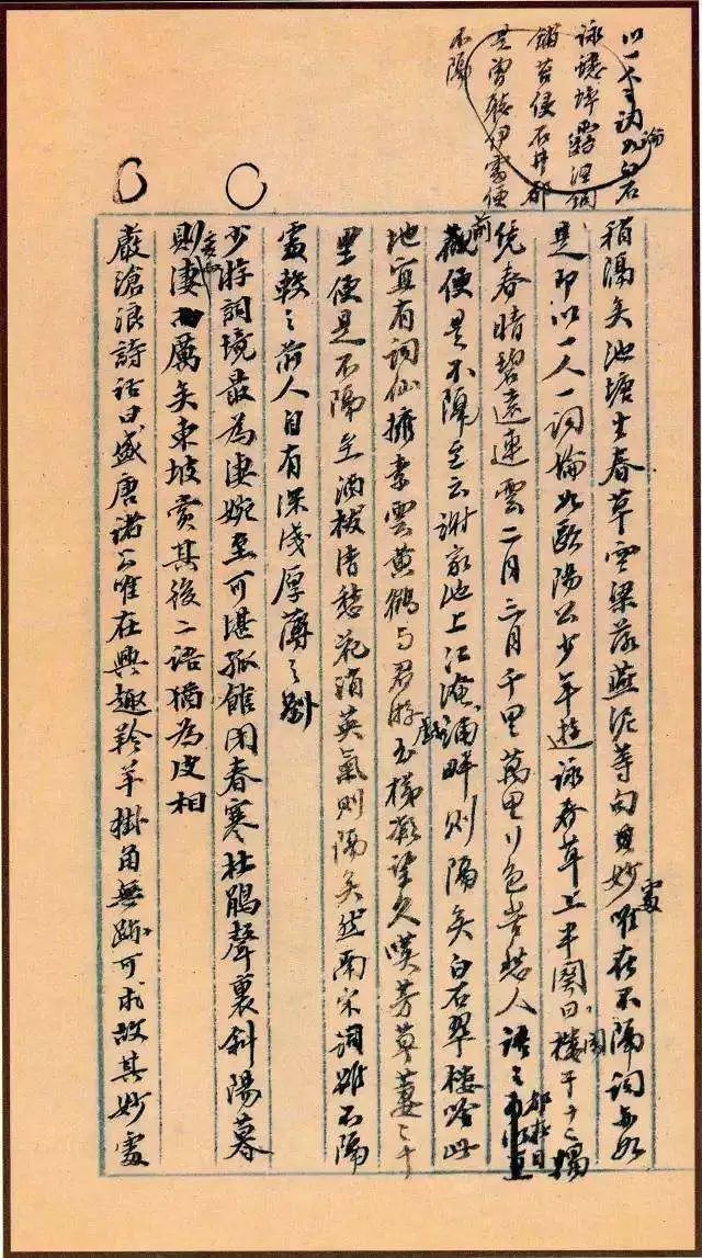 其次,强调言情体物要“不隔”。他认为作者要将自己所见所感真实地表达出来,必须做到“语语都在目前”,否则就是“雾里看花,终隔一层”。何谓“隔”与“不隔”?他列举了大量的诗词名句以说明,像谢灵运的“池塘生春草”、薛道衡的“空梁落燕泥”是不隔,而姜夔的“谢家池上,江淹浦畔”“酒祓清愁,花消英气”即为“隔”。前者写景传神,生动可亲,“语语都在目前”;后者则“如雾里看花,终隔一层”。所谓“雾里看花”,就是形象不够鲜明,给人似是而非的感觉,未能传达外物之神理。因为强调言情体物要“不隔”,所以他特别反对词中代字、用事、粉饰,认为:“人能于诗词中不为美刺投赠之篇,不使隶事之句,不用粉饰之字,则于此道已过半矣!”最后,言外有无穷之意。