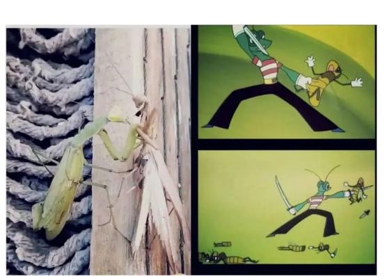 古人“生物治蝗”的工具主要是蝗虫的几个天敌:鸡鸭、鸟、蛤蟆、螳螂……在陪伴我们长大的动画片《黑猫警长》中,有一集还特别刻画了“螳螂灭蝗”的情节。