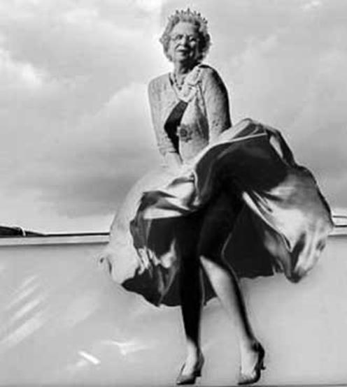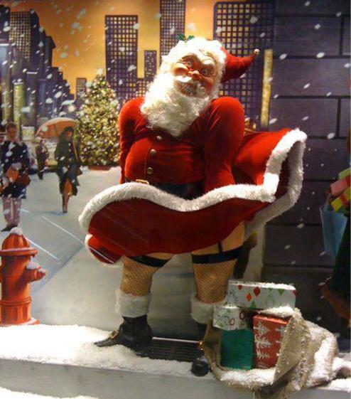 梦露的形象和圣诞老人结合,圣诞老人代表节日的喜庆、快乐、吉祥……梦露的这个经典动作,则有些许色情的意味,把它们放在一起,是要表达什么呢?