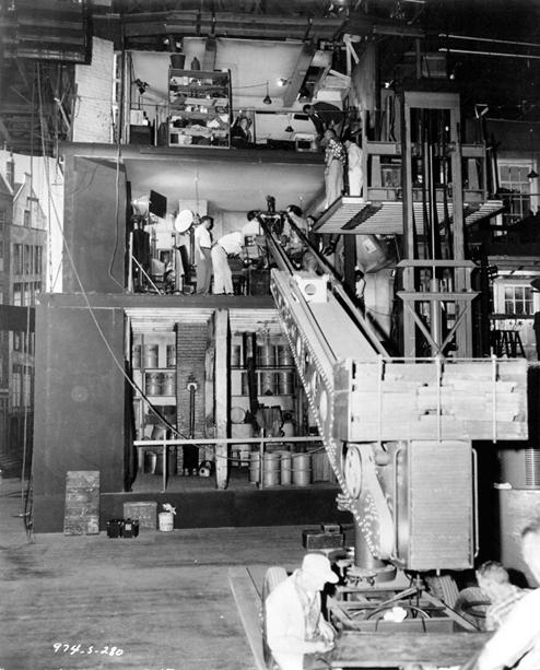 这是福斯公司摄影棚里的一台巨型摇臂机。1959年,电影《安妮日记》正在拍摄,主要场景是在照片中的二楼。我们现在很多电影都使用摇臂拍摄,但在半个多世纪之前,就已经开始使用几层楼高的摇臂了。