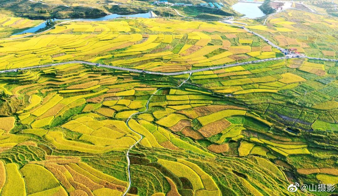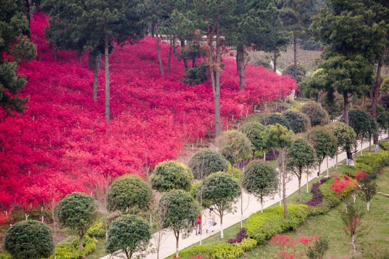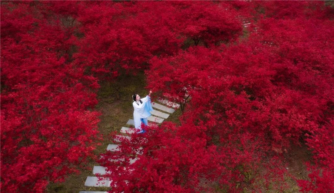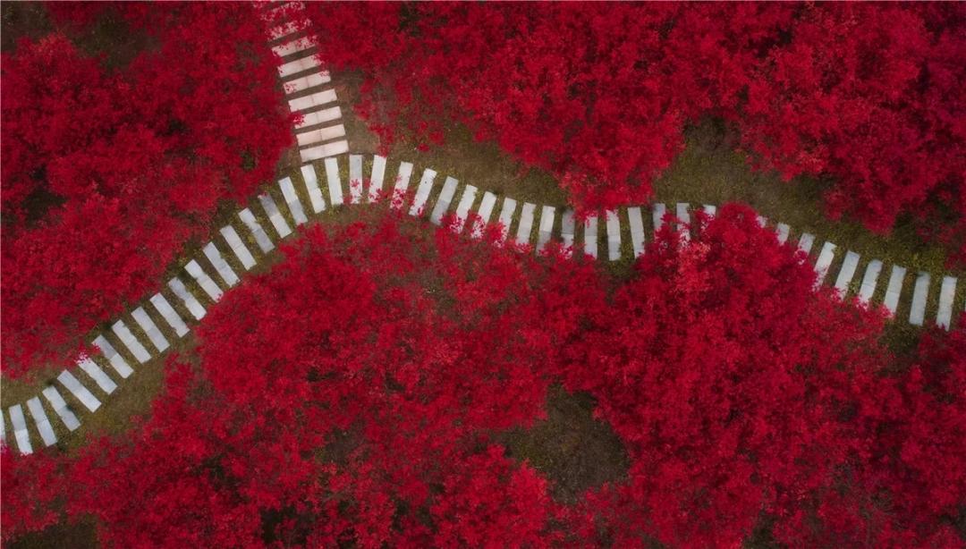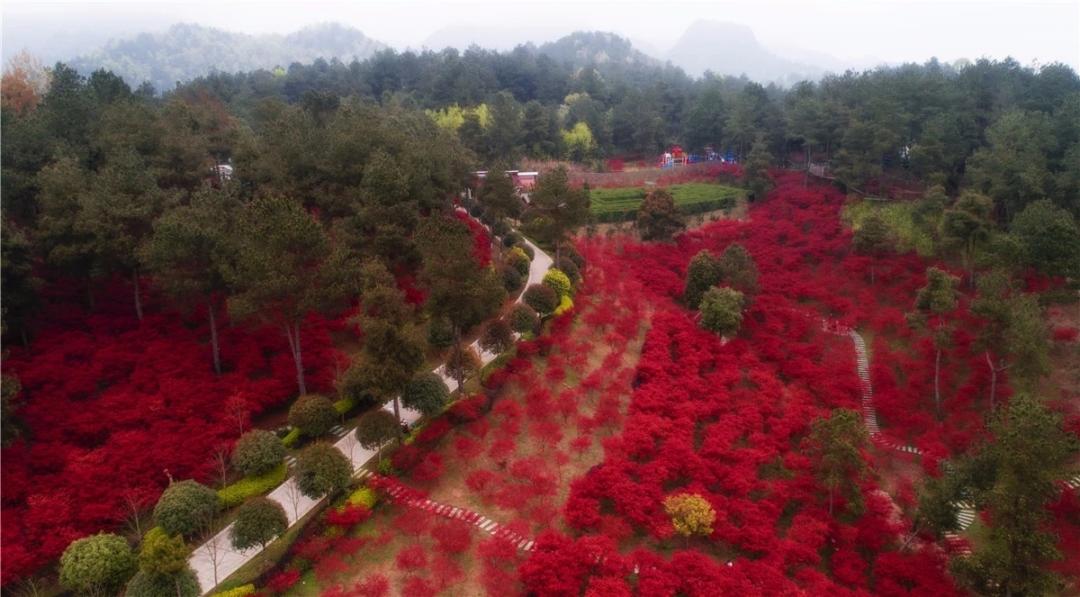青山环绕间一片耀眼的红