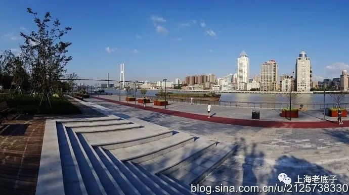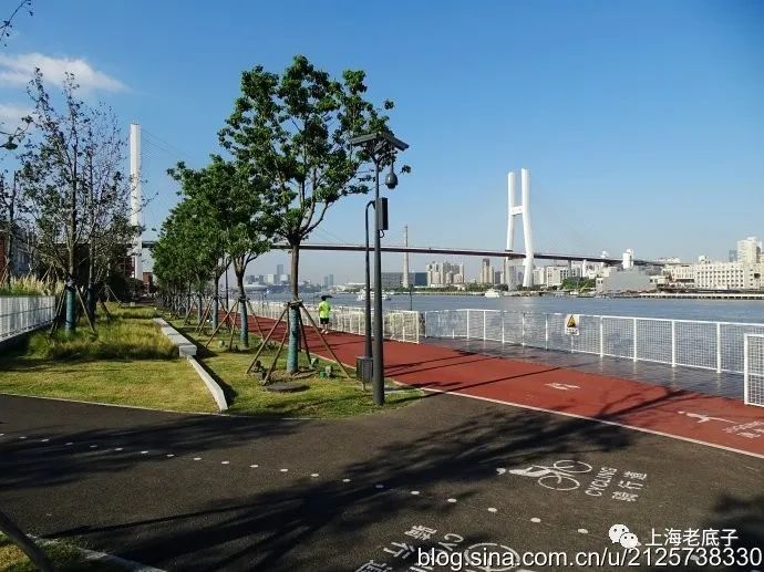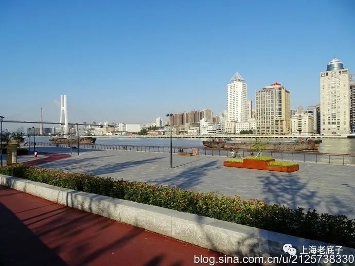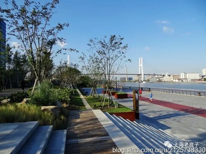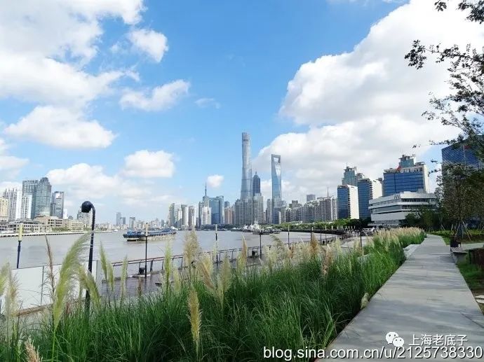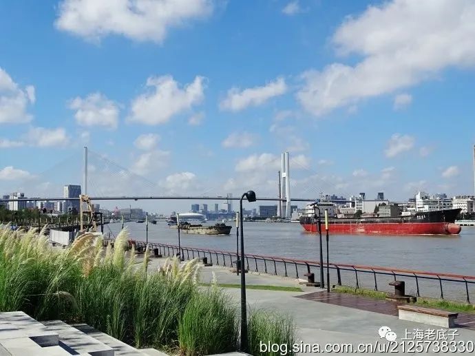 在这颇具野趣的滨江,遥望浦江两岸现代建筑令人心旷神怡。