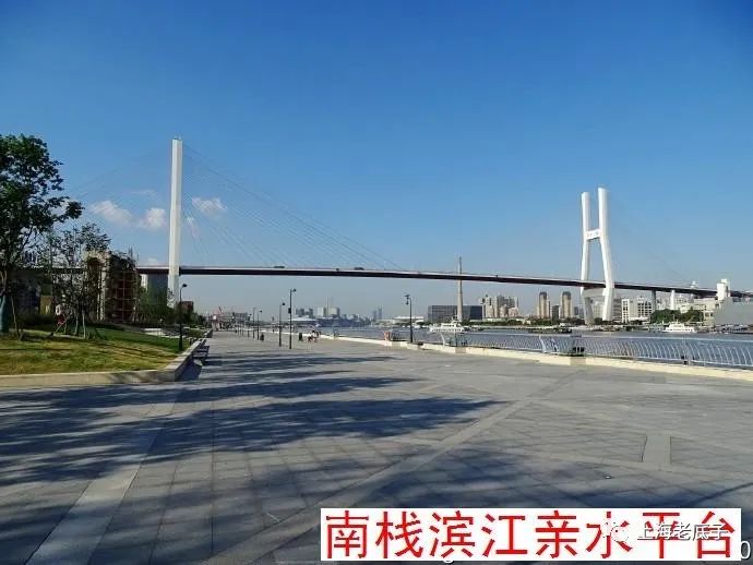 南栈滨江绿地北临船坞滨江绿地,南接南浦大桥,与浦西的陆家浜路渡口隔江相望。绿地融合教育、探索、运动、休闲、观景等各种功能。利用现状保留的30米宽高桩码头,改造为直立式防汛墙,形成层层递进的退台式地形,避免阻挡观景视线,方便游客获得亲水体验。漫步于乌柏、银杏和江凖形成的彩叶乔木林带中,感受休闲观景,沁人心肺的宜人空间。