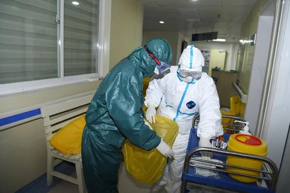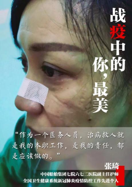 岂曰无衣,与子同袍。有人千里驰援,有人坚守阵地。1月26日,中国船舶湖北六七二医院被征为新冠肺炎定点收治医院,感染三科护士长张琦虽然骨折尚未痊愈,仍然身先士卒,带领全科护士投入到紧张而又忙碌的病房改造准备工作中,搬运设备、物资,常常加班到深夜,“做好防护,有我打头阵,不要怕。危险的事我来,你们在我身后!”