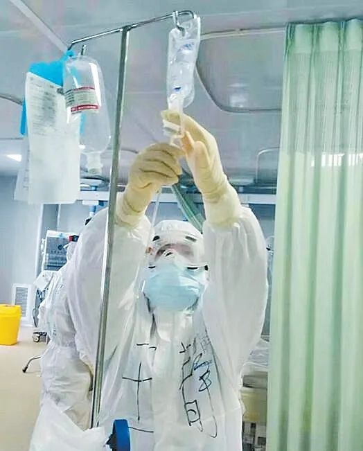 协助患者翻身、注入肠内营养液、静脉输液穿刺、鼻饲喂饭、协助排便、心理疏导……进了病区,看护19个危重患者的韩莹像陀螺转个不停,防护服里的衣服已经湿透,鼻梁被N95口罩勒出来一道重重的印痕,汗水几次都模糊了护目镜下的眼睛。“把自己的每一天当最后一天,渺小的自己会给世界留下痕迹”,用力量和信心去和无常抗争,投入每一场救治战斗中。
