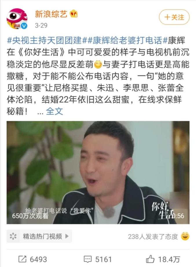 没想到这又给了康辉一个撒糖的机会,一脸害羞地回答,