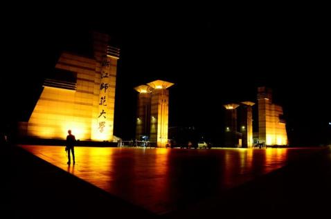 这里,不仅挨着浙师最大的湖——初阳湖,还总能与初阳湖一同入镜,成为浙师最有代表性的校园景观。这顶浙师特有的“小贝雷帽”,正是初阳湖畔的“文艺之城”,每到音乐的狂欢之夜来临,这里就会亮起灯光,与初阳绕湖灯遥相辉映,点燃一场艺术的盛宴。