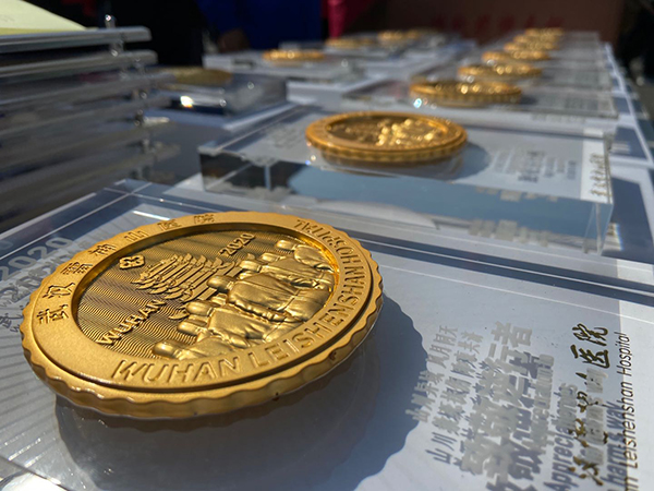 雷神山医院医务、管理及志愿者代表会获颁“抗疫工作证明”和“抗疫纪念章”。武汉市政协副主席、雷神山医院运行保障指挥部指挥长梁鸣会向雷神山医院及6家医疗单位、运行保障单位颁发纪念牌,向运行保障人员优秀代表颁发服务之星荣誉证书。