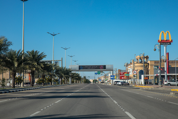 大约一个小时后,大巴进入了达曼市区。当道路和建筑出现在眼前,沙特那层神秘的面纱好像一下子就被揭开了——看上去,她与其他诸如阿联酋、巴林之类的海湾国家无异——同样宽阔的马路,同样普通到毫不起眼的建筑,同样的车水马龙。最大的不同在于,沙特的路上几乎看不到任何行人。