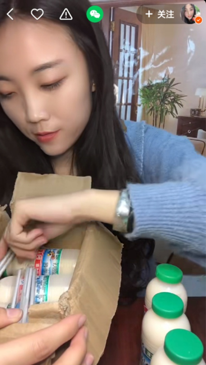 同时,开箱完毕后播主在自己的快手小店上和直播间进行产品带货,在视频中可以看到,基本上一箱李子园甜牛奶以10瓶为单位,包含多种口味,但快递包装比较简陋,打开纸箱直接就是各个瓶装奶,总价钱大约为24.9左右。