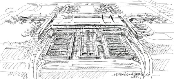 该工程是中建西北院建院以来合同额第一大单。其规模宏大、难度高深、内容复杂,具有极强的工艺性和综合性。建设规模约112万平方米,其中航站楼约70万平方米,综合交通中心约42万平方米。设计内容涵盖了规划、建筑、工艺、交通、结构、给排水、暖通、电气等专业及景观、消防、幕墙、内装、机电设备、行李系统、登机桥以及桥载设备、捷运系统等专项设计。