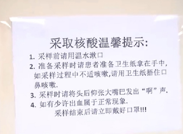 4、前往急诊医学科一楼“咽拭子取样登记处”登记个人信息,在“咽拭子采集区”采集。过程中可能有轻微不适感,但采样大约2-3秒即可完成。