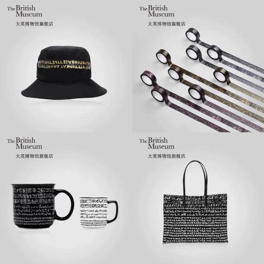 作为最早入驻天猫的世界著名博物馆,大英博物馆文创和馆藏一样丰富多彩,各种合作联名款也是五花八门,从珠宝到日历、杯垫到颜料,种类丰富。仅罗塞塔石碑就开发出了55种相关的文创产品,天猫旗舰店里我们可以看到的有罗塞塔石碑渔夫帽、摆件、咖啡杯等等。