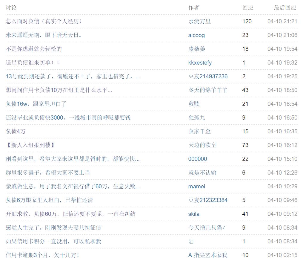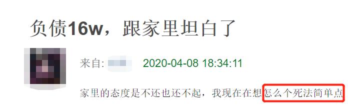 由于背上沉重的债务,这些年轻人的心情也相当崩溃。我在组里多次看到下面这些吓人的字眼。