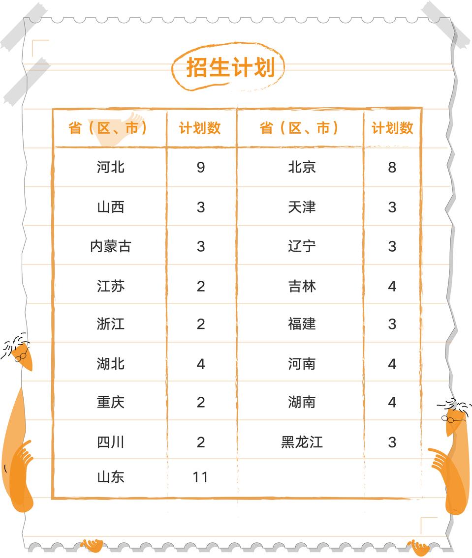 2. 招生计划:70人,见下图。最终招生计划及文理分科情况以各省级招生考试机构公布为准。