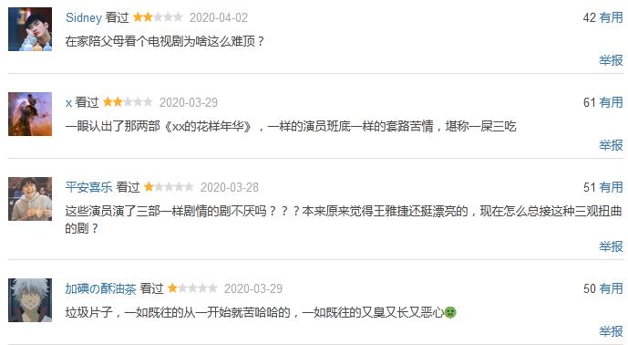 不过,这类剧集也充分体现了中老年与年轻受众、电视与网络审美的割裂。除《谷文昌》尚未开分,其余三部剧的豆瓣评分均在4.0左右——许多年轻人陪父母长辈看完之后,跑上来吐槽发泄。