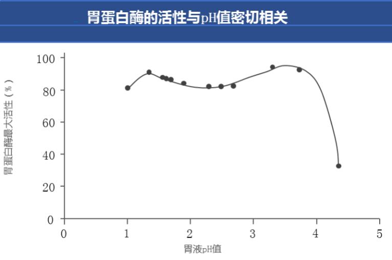 一项发表在《Gut》上,纳入了422个胃食管反流病患者的研究表明:增加的酸暴露(直立位)是食管炎严重程度增加的唯一的独立相关因素[7]。这一结论,与Johnson和Demeester早在1974年就在《一种定量测评胃食管反流的方法:24小时远端食管pH监测》一文中指出的:“pH为4,是区分食管反流病严重程度的阈值”这一观点,是相似的[8]。这些结论主要归因于,胃蛋白酶这一RE患者食管黏膜受损的重要影响因素,其活性在pH大于4环境下,可以明显降低[9](Fig.1):