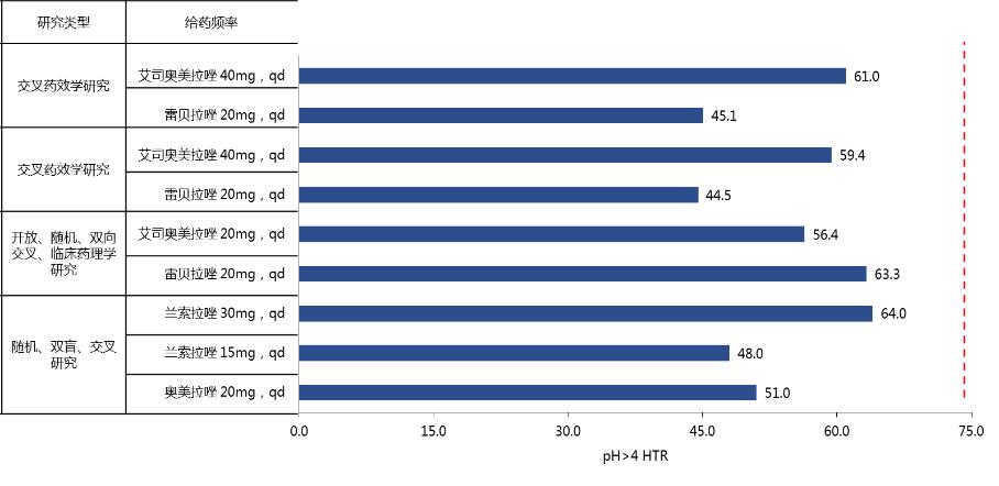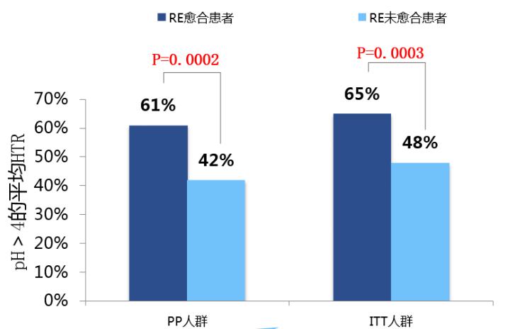 因此,RE的黏膜愈合,关键在抑酸;抑酸的关键,在于提高pH>4 HTR。无疑,pH>4 HTR,成为了评价药物的抑酸效果从而促进黏膜愈合的能力的一个重要指标。