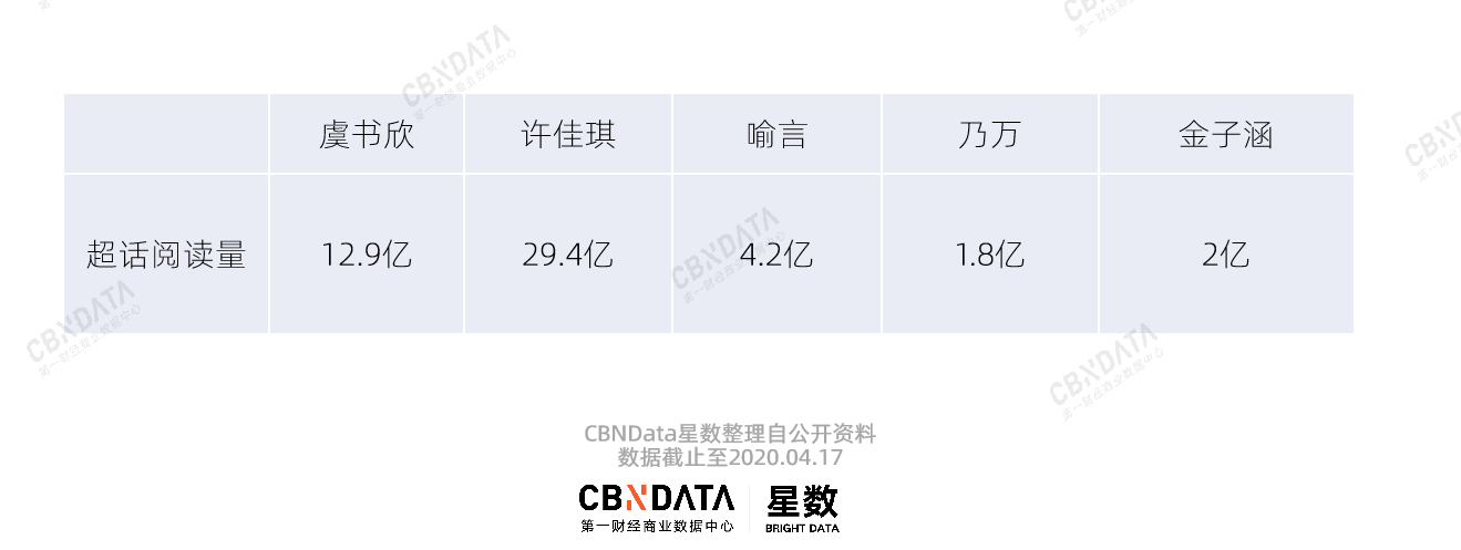 在最能反应粉丝活跃度的超话领域,截止至4月17日,乃万和金子涵的超话阅读量为2亿。这一数值仅为虞书欣的六分之一,许佳琪的十五分之一,粉丝忠实度与活跃度还有很大的上升空间。