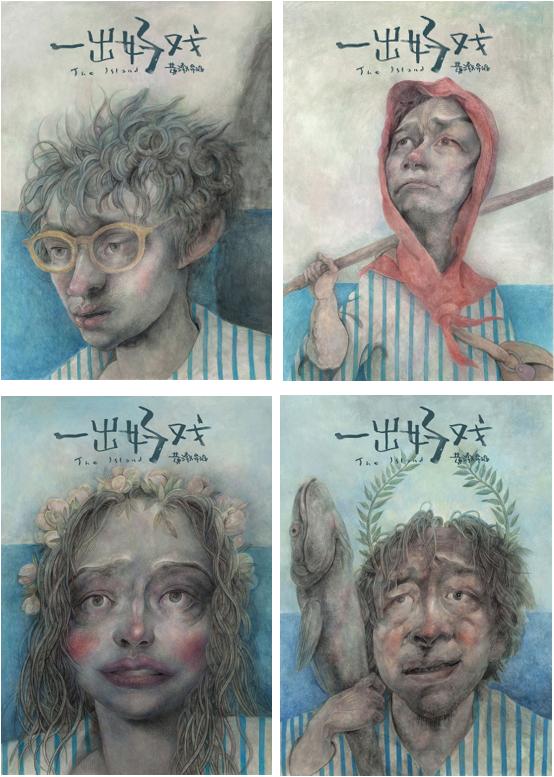 《一出好戏》还推出了很多款不同风格的海报,如邱炯炯绘制的人物海报和刘健绘制的手绘海报,都有作者各自的风格。