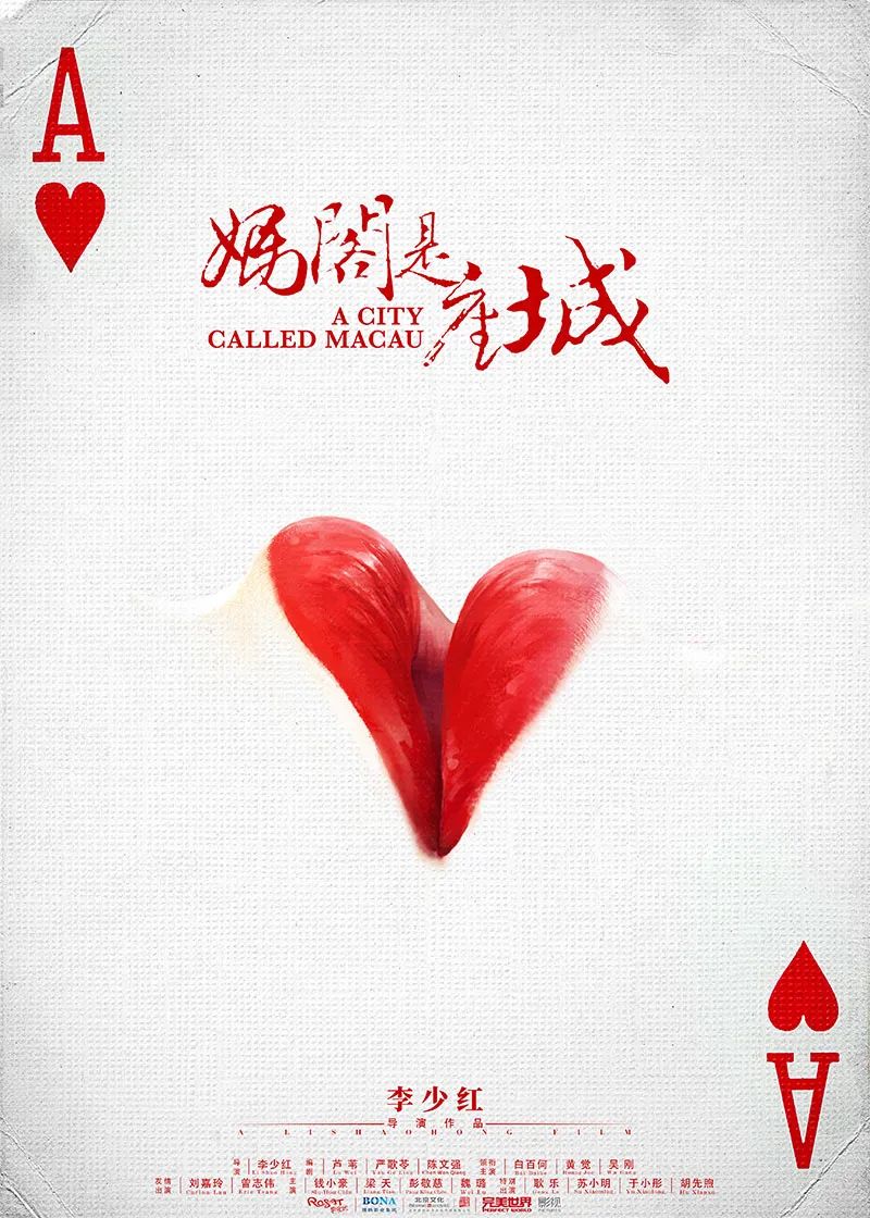 这张也是不错的设计,因为故事关注的就是澳门赌场女“叠码仔”和三个男赌徒的情感故事,这张可谓极简风格的海报将红唇、爱心和赌牌全部囊括其中,简约而不简单。