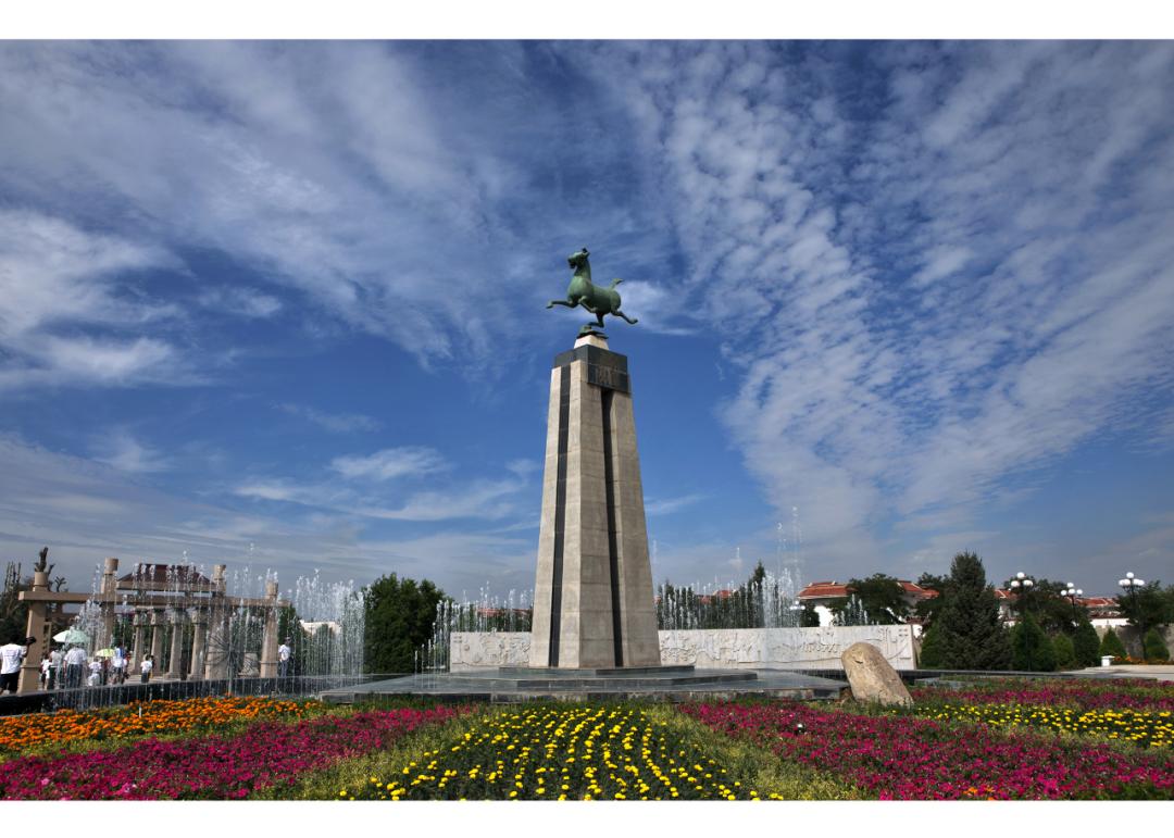 首先映入眼帘的是以“泉源”为主题的组景区,寓意是祁连山雪水滋润着武威大地,饮水思源。高高的花岗岩基座,两柱对称,上面一匹“马踏飞燕”凌空奔腾,气吞山河。基座四周由草坪、花卉、喷泉结合的道教文化组成的八卦图案烘托。组景设计新颖,意义深远;气势磅礴,令人惊叹。