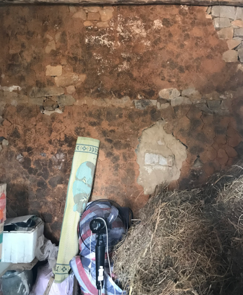 村民【出录音】还是老样子,没什么改变。里面漏水很厉害。一旦刮台风就很危险,整个墙壁都裂了。有一次雨天,雨水全部漏进房子里。房子上面全裂了,房子里面的墙壁只剩下石头,土已经全部都流失了。我母亲总是从后面走出来,万一出了什么事情老人知道什么,我希望政府可以解决这个事情。【录音止】