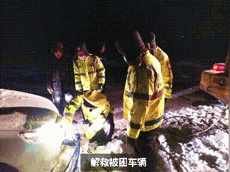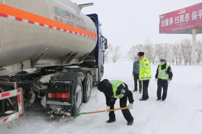 截至21日14时,甘南县公安局交警大队在两天中共出动警车23辆,为37辆被困滞留货车驾乘人员送去食物和热水,并协调找来铲车、清雪车以及人力清雪等方式救援车辆49辆。