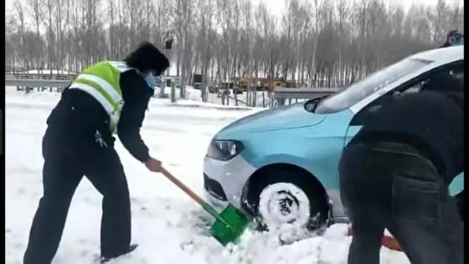 4月20日下午3时30分许,铁锋交警大队在汽贸城卡点附近执勤时,发现一辆宝马车停在道边,由于积雪太厚,车轮打滑,无法前进,执勤民警、辅警发现这一情况后,立即上前帮助驾驶人推车,最后成功将车辆挪动,驾驶人对交警的帮助表示感谢:“风雪中有你们的守护,让我们多了一份安心,谢谢交警同志,你们辛苦了。”