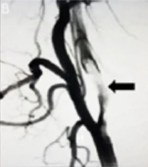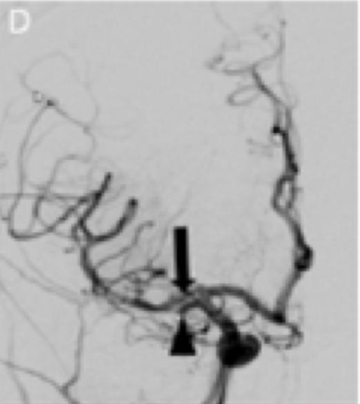 支架取栓(Stent retriever thrombectomy)亦可用于该病例的治疗。然而,由于支架取栓可造成潜在的内皮损伤,因此血栓抽吸术常被用作一线治疗。Koge等人描述了1例DMCA闭塞合并ICA闭塞时支架取栓所造成的内皮损伤,并建议在类似情况下应进行血栓抽吸术。