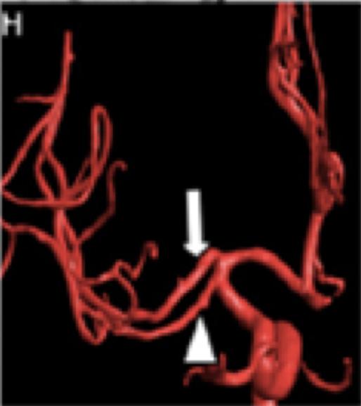 尽管这些大脑中动脉变异本身并无临床意义,但已有文献报道在AMCA或DMCA的起始处发现罕见的动脉瘤,不过十分罕见。据我们所知,目前有关AMCA或DMCA参与急性缺血性卒中的英文文献报道各有一篇。