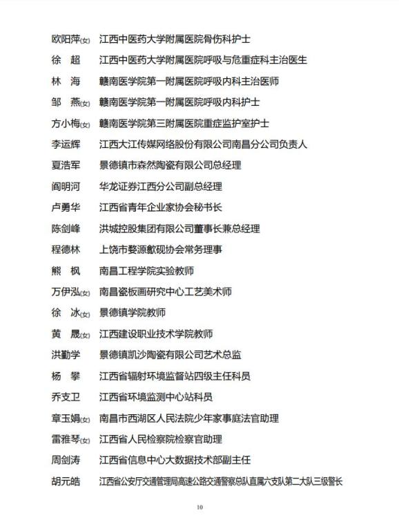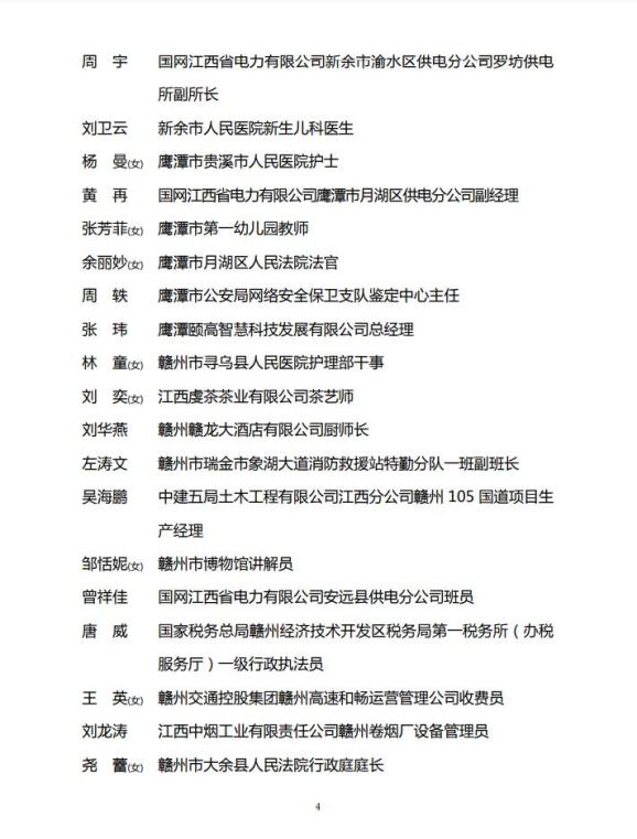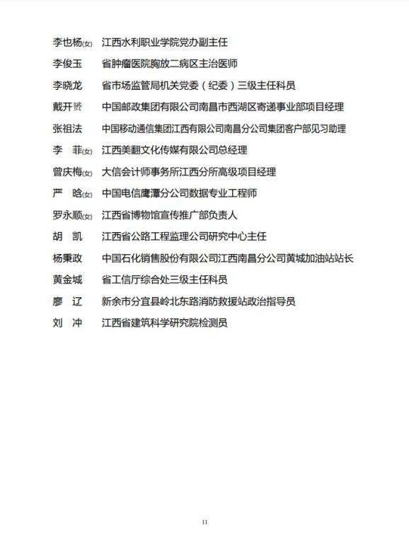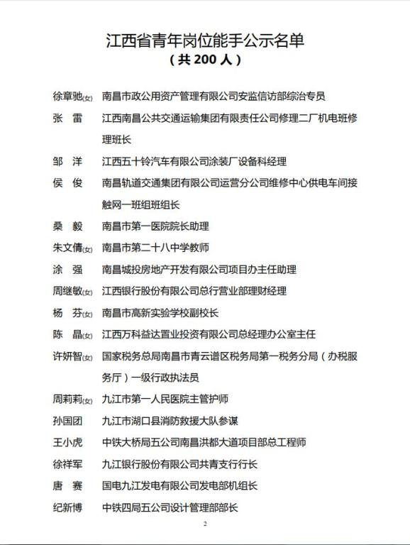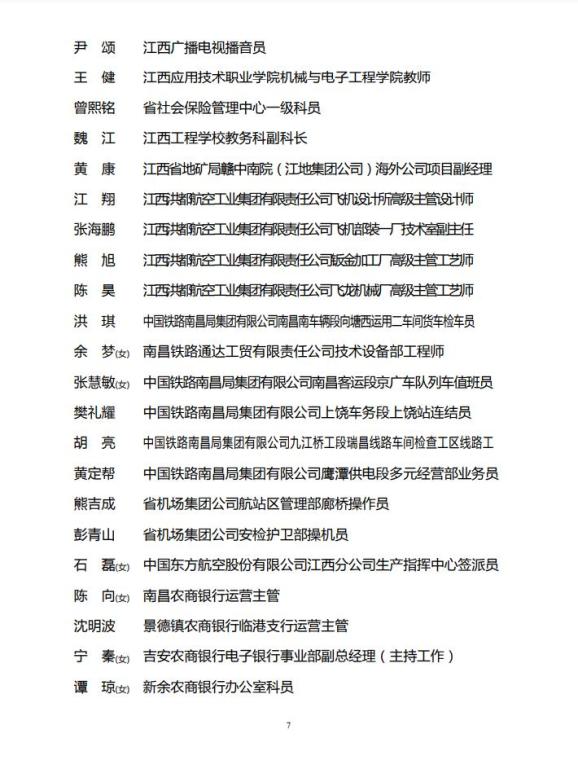 江西省青年岗位能手公示名单