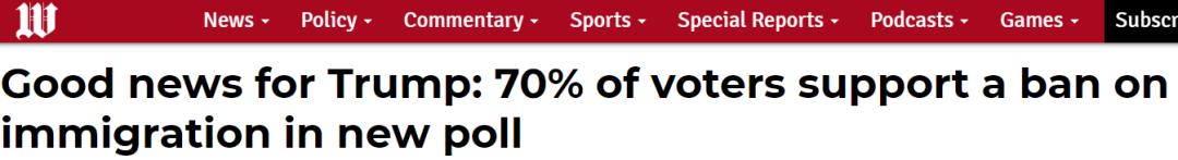 与此同时右翼媒体华盛顿时报(注意不是华盛顿邮报或者纽约时报)也在三天前做了一个民调,结果显示70%的参与者支持美国政府采取临时限制移民的政策。